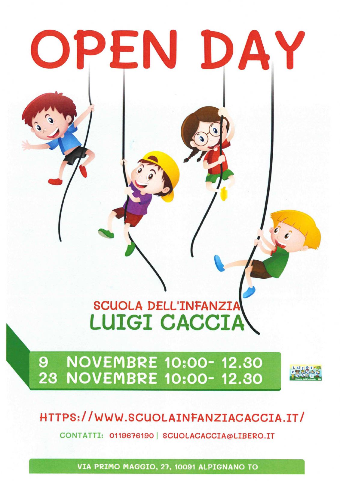 Il 9 e 23 novembre, dalle ore 10.00 alle 12.30, open day alla Scuola dell'Infanzia Luigi Caccia via Primo Maggio 27 Alpignano.