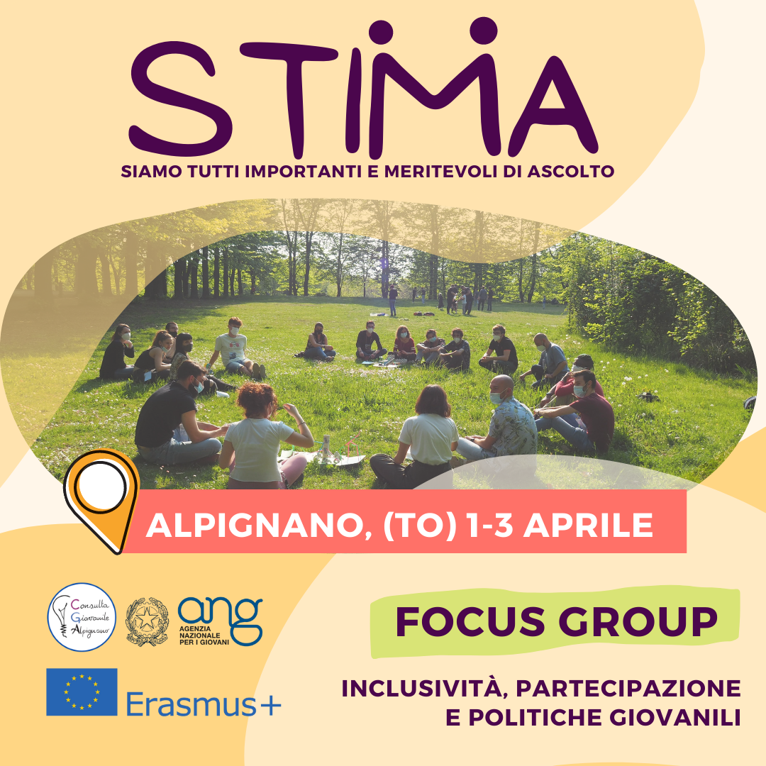 Il progetto STIMA (Siamo Tutti Importanti e Meritevoli di Ascolto) è finanziato dal programma Erasmus+ e implementato dall’Agenzia Nazionale Giovani in partenariato con: Europiamo ETS, l’associazione di promozione sociale cilento Youth Union, AEGEE Brescia e i Comuni di Alpignano, Bojano e Ragusa.