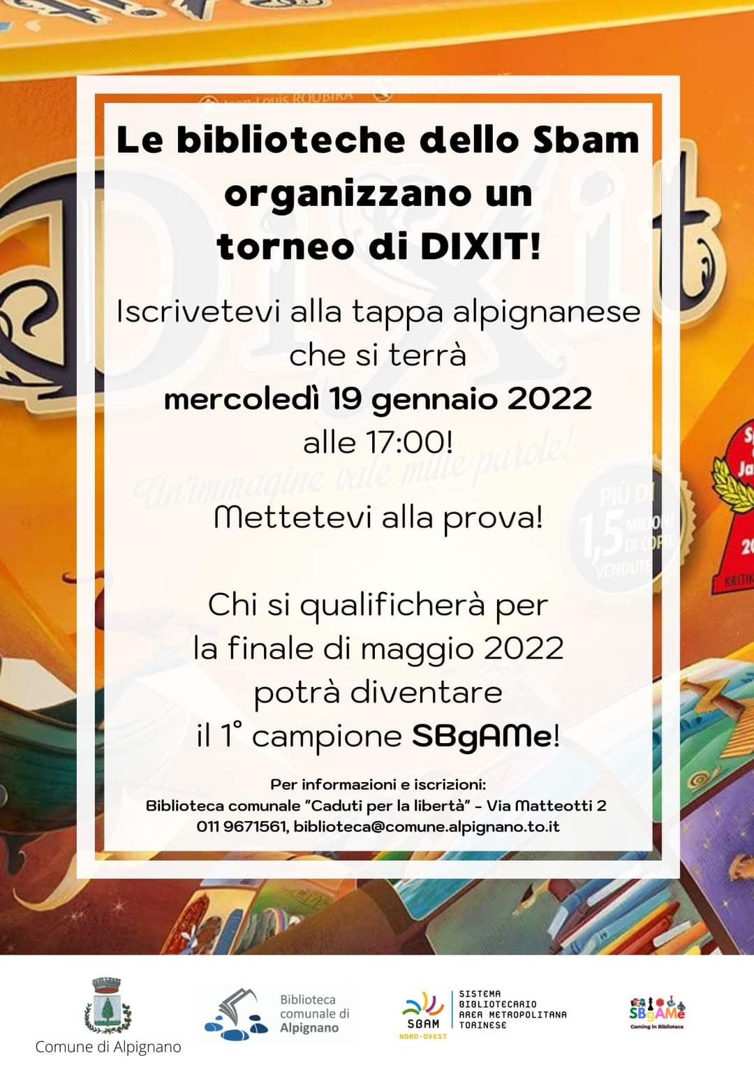 Se amate i giochi da tavola, avete ancora tempo per iscrivervi al torneo di Dixit organizzato dal sistema bibliotecario SBAM che terminerà a maggio.