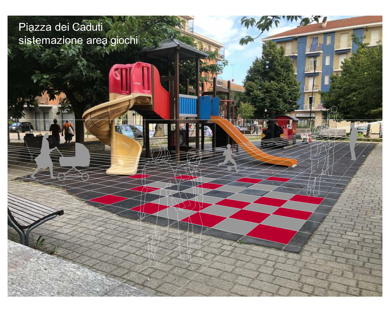 L'Ufficio Tecnico Area Lavori Pubblici informa che lunedì 19 agosto p.v. inizieranno i lavori di posa della pavimentazione dell'area giochi di piazza dei Caduti. La nuova pavimentazione a scacchiera rappresenterà un gioco stilistico affascinante grazie all'alternarsi del grigio e del rosso sulla superficie, proprio come se si trattasse della base del gioco della Dama o degli Scacchi in forma gigante.