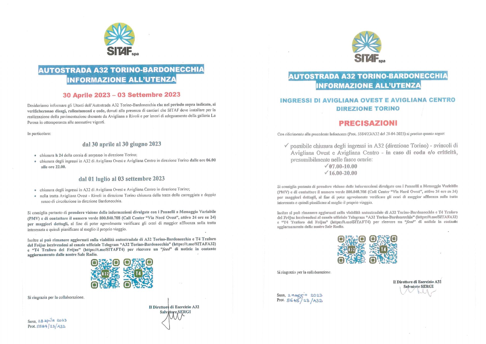 SITAF s.p.a informa gli utenti dell'Autostrada A32 Torino-Bardonecchia che nel periodo sopraindicato si verificheranno disagi, rallentamenti e code dovuti alla presenza di cantieri.
