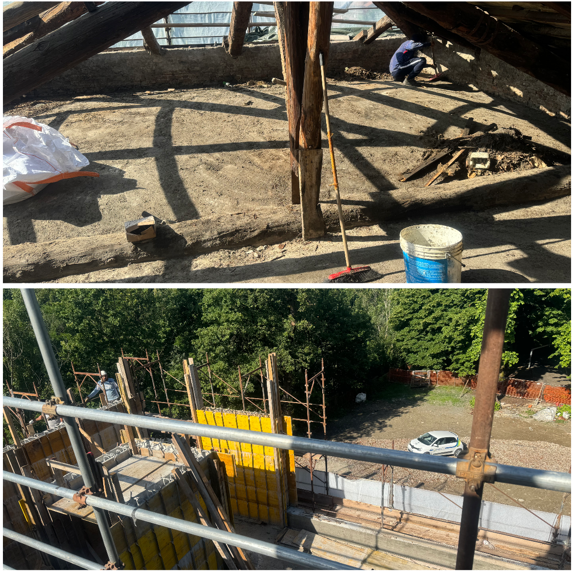 - completamento montaggio ponteggio del nuovo edificio in aderenza alla villa storica;