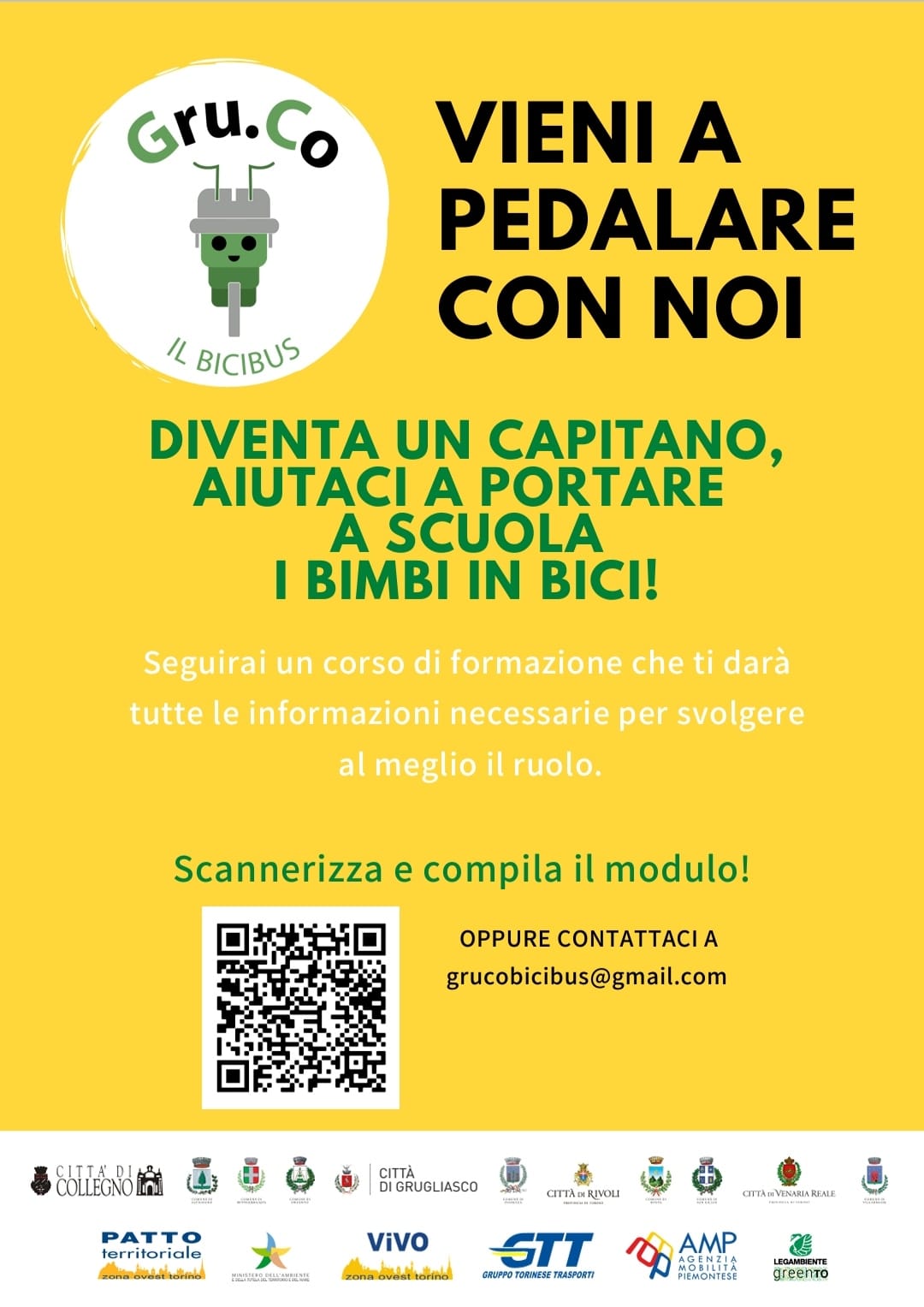 Per candidarsi, scannerizza e compila il modulo oppure scrivi a grucobicibus@gmail.com