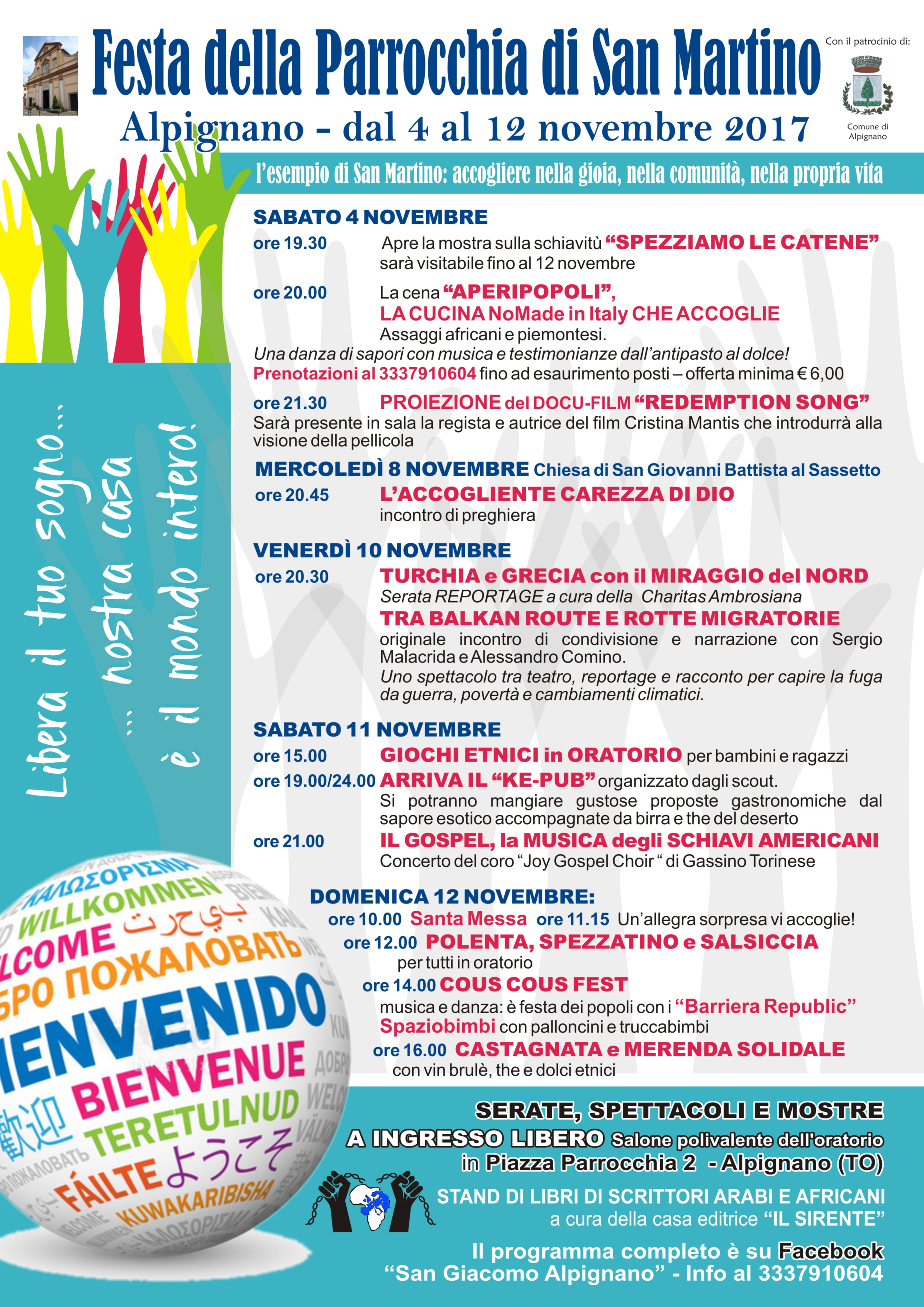 La Parrocchia San Martino Vescovo organizza, da Sabato 4 a Domenica 12 Novembre, la Festa della Parrocchia di San Martino all'insegna dell'accoglienza e dell'integrazione.
