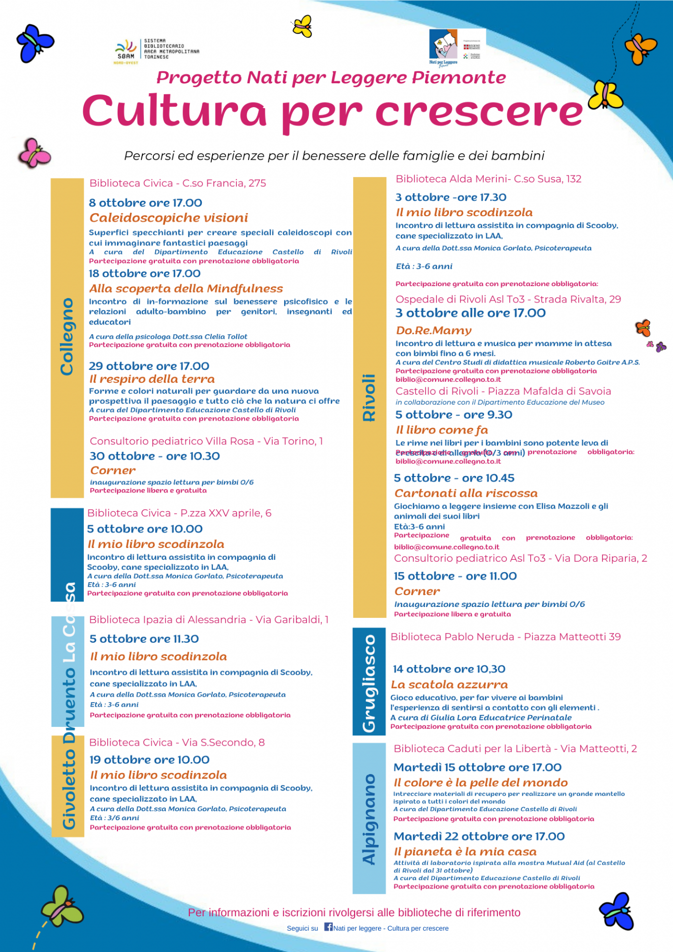 Le biblioteche dell'Area Nord Ovest Sbam propongono un ricco calendario di iniziative rivolte alle famiglie con bambini da zero a sei anni, nell'ambito del progetto "Cultura per crescere" realizzato con il sostegno della Fondazione Compagnia di San Paolo.