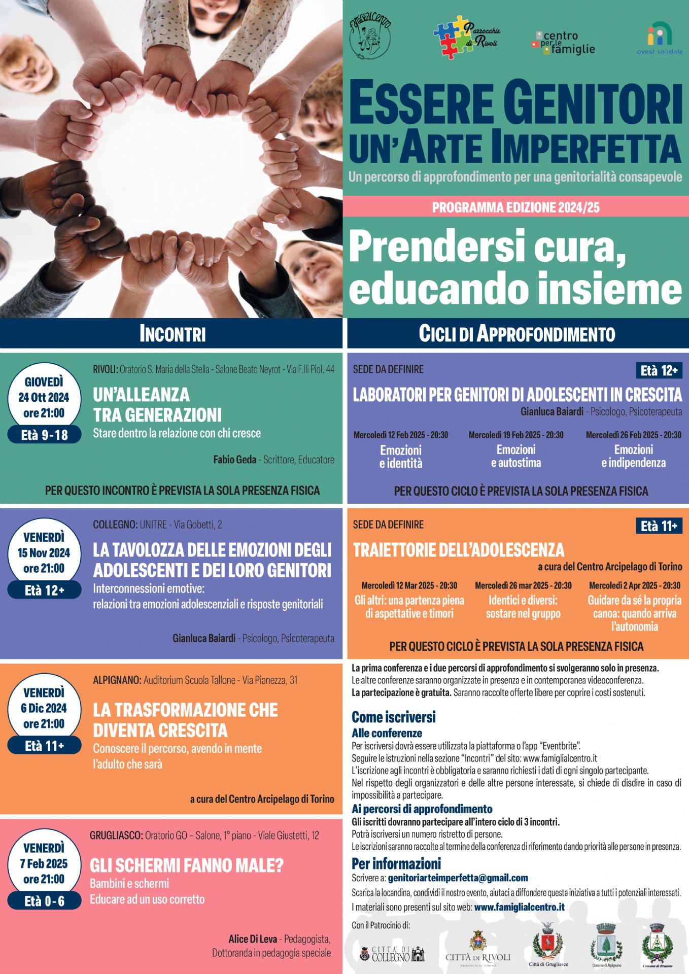 Il Comune di Alpignano patrocina il nuovo ciclo di incontri dal titolo "PRENDERSI CURA, EDUCANDO INSIEME", dedicato alla genitorialità consapevole.