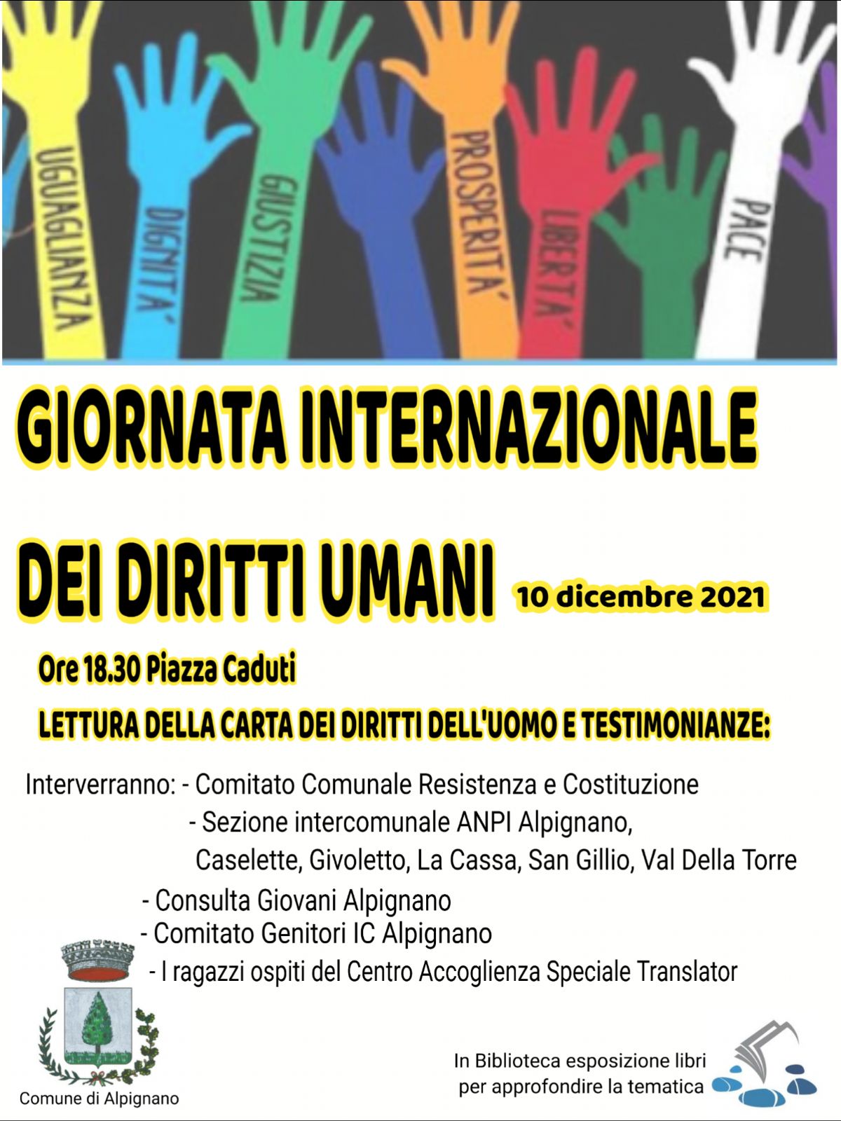 L'Amministrazione Comunale celebra la Giornata Internazionale dei Diritti Umani venerdì 10 dicembre, alle ore 18.30, in Piazza Caduti, con la lettura della Carta dei Diritti dell'uomo e alcune testimonianze.