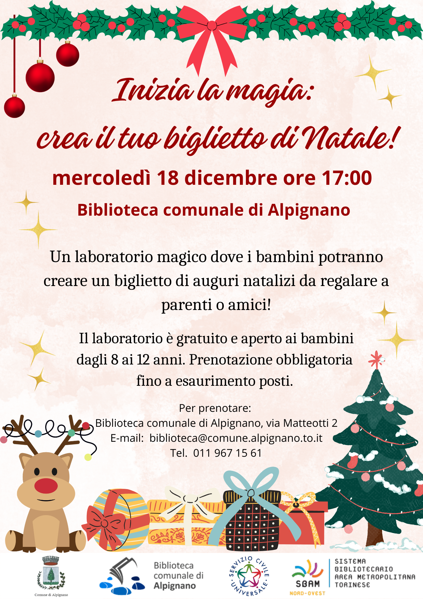 Grazie alla collaborazione della volontaria del Servizio civile, la biblioteca organizza un laboratorio per la creazione di biglietti di auguri per Natale.