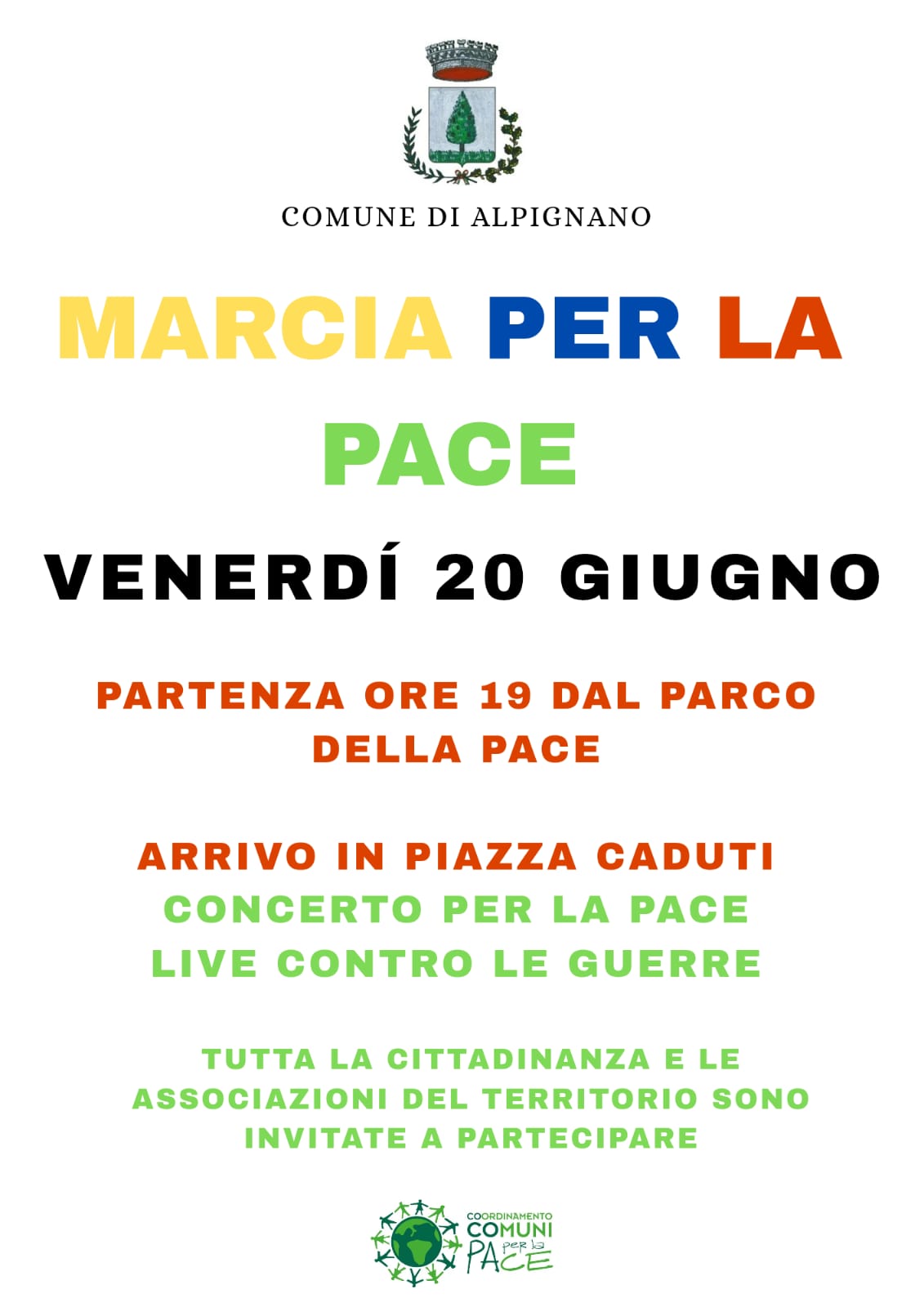 In un momento di forte preoccupazione per i conflitti in atto, il Comune di Alpignano organizza la “Marcia per la pace” venerdì 20 giugno, alle 19:00, con partenza dal Parco della Pace.