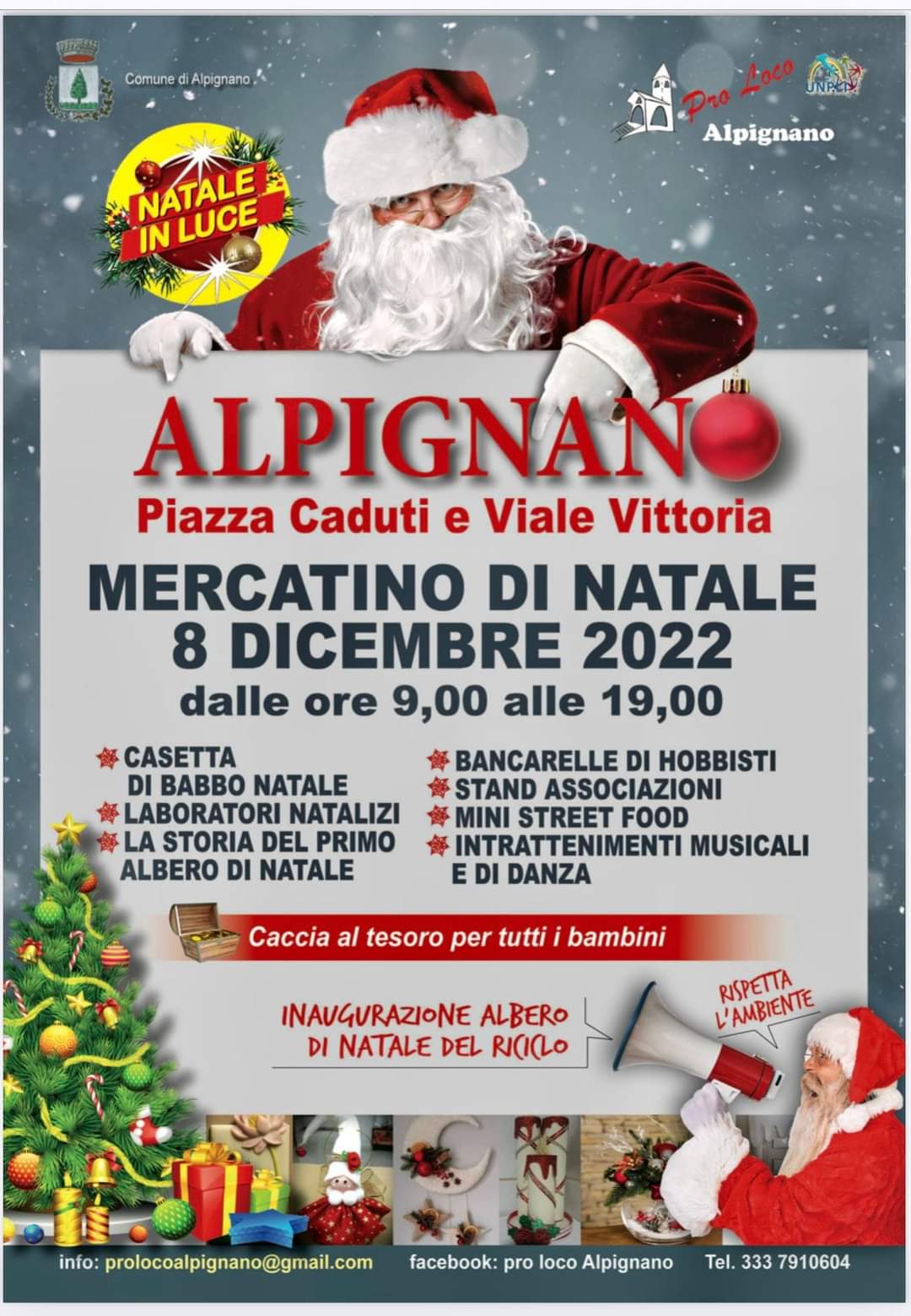 Giovedì 8 dicembre si svolgerà il tradizionale mercatino di Natale con oltre 90 banchi, organizzato dalla Pro Loco Alpignano in collaborazione con il Comune di Alpignano.
