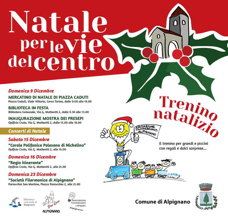 Domenica 9 dicembre ritorna il tradizionale mercatino di Natale, organizzato dalla Pro Loco Alpignano, un appuntamento per immergersi nella più autentica atmosfera natalizia: 80 bancarelle, musica e animazioni.