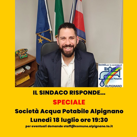 Torna la rubrica "Il Sindaco risponde" con lo speciale "Società per la condotta di acque potabili di Alpignano", questa sera alle 19.30.
