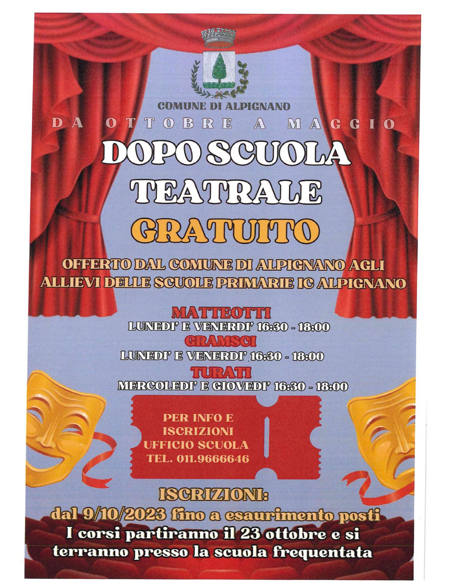 Anche quest'anno l'Amministrazione Comunale di Alpignano finanzia i corsi di post scuola teatrale indirizzati agli studenti delle scuole primarie di Alpignano.