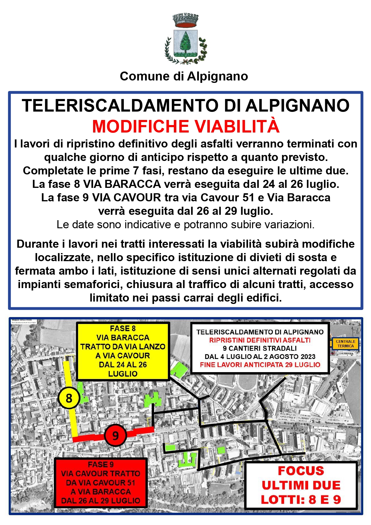 Attualmente sono in corso la FASE 6 e parte della FASE 7 (Via Rossini) che termineranno entro venerdì 21 luglio.