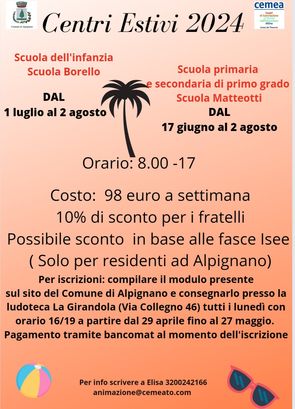 Iscrizione centro estivo infanzia presso Scuola Borello;