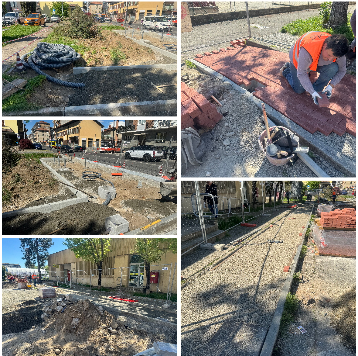 - completamento posa cordoli per la realizzazione della nuova fermata dell'autobus (PEBA) via Cavour fronte ufficio postale;