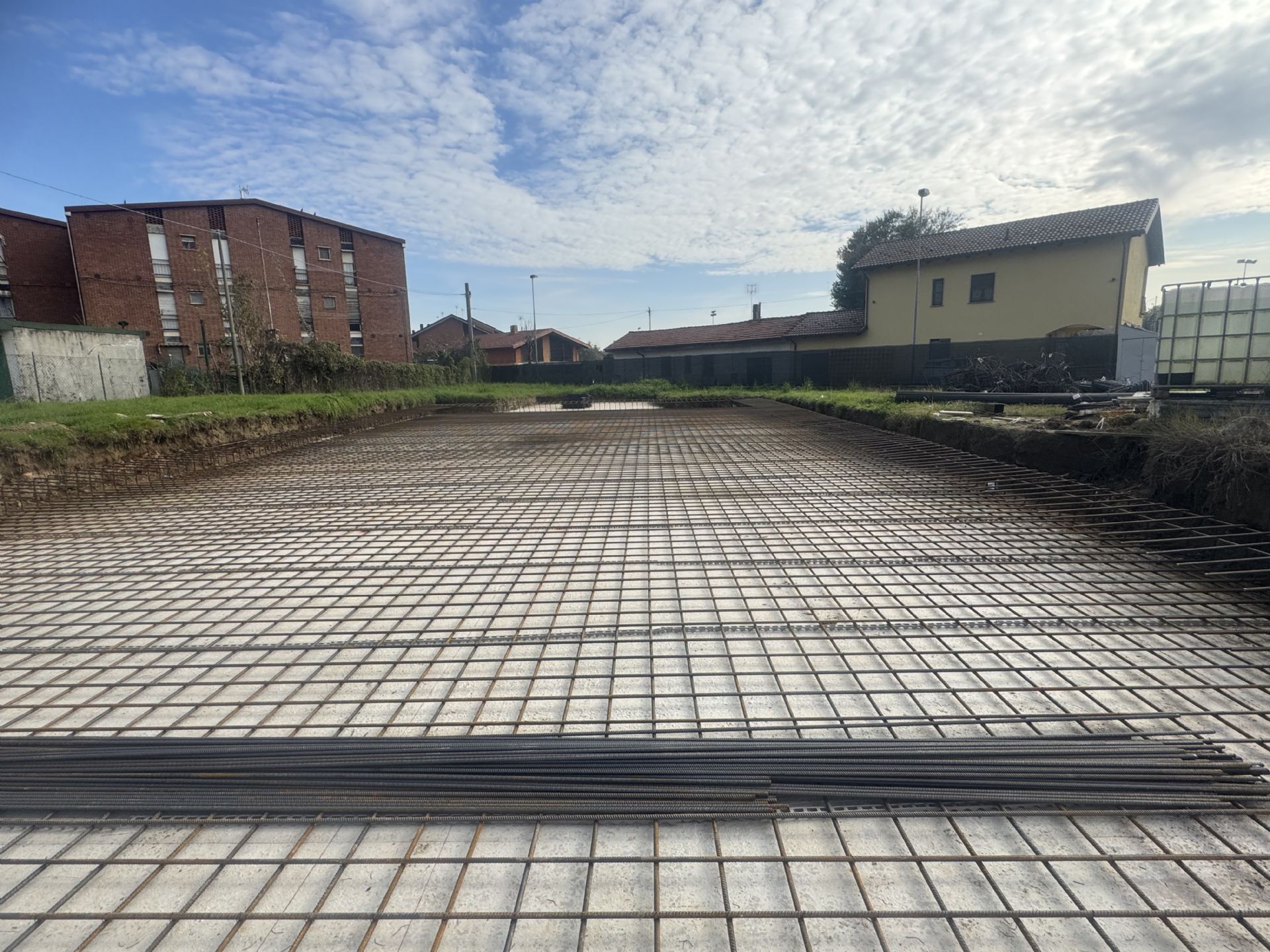 Oggi sono in corso i lavori di posa dell'armatura in acciaio della platea di fondazione della struttura portante antisismica.
