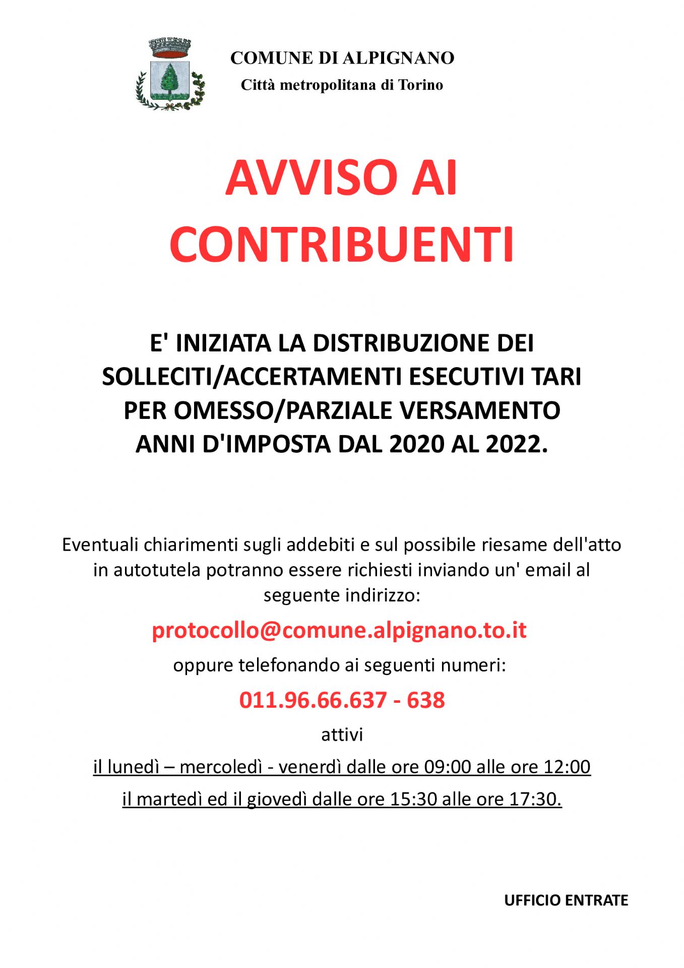 Si informa la cittadinanza che, nei prossimi giorni, verranno avviate alcune attività di verifica relative alla TARI (Tassa sui Rifiuti) riferita ad annualità passate.