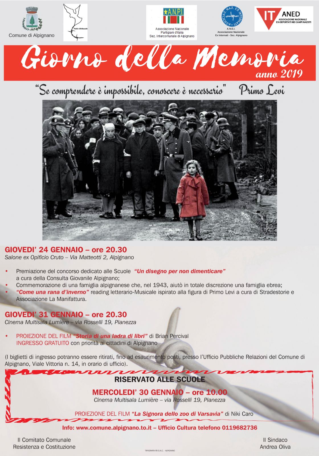 L'Amministrazione Comunale di Alpignano e il Comitato Comunale Resistenza e Costituzione organizza per il Giorno della Memoria tre appuntamenti: