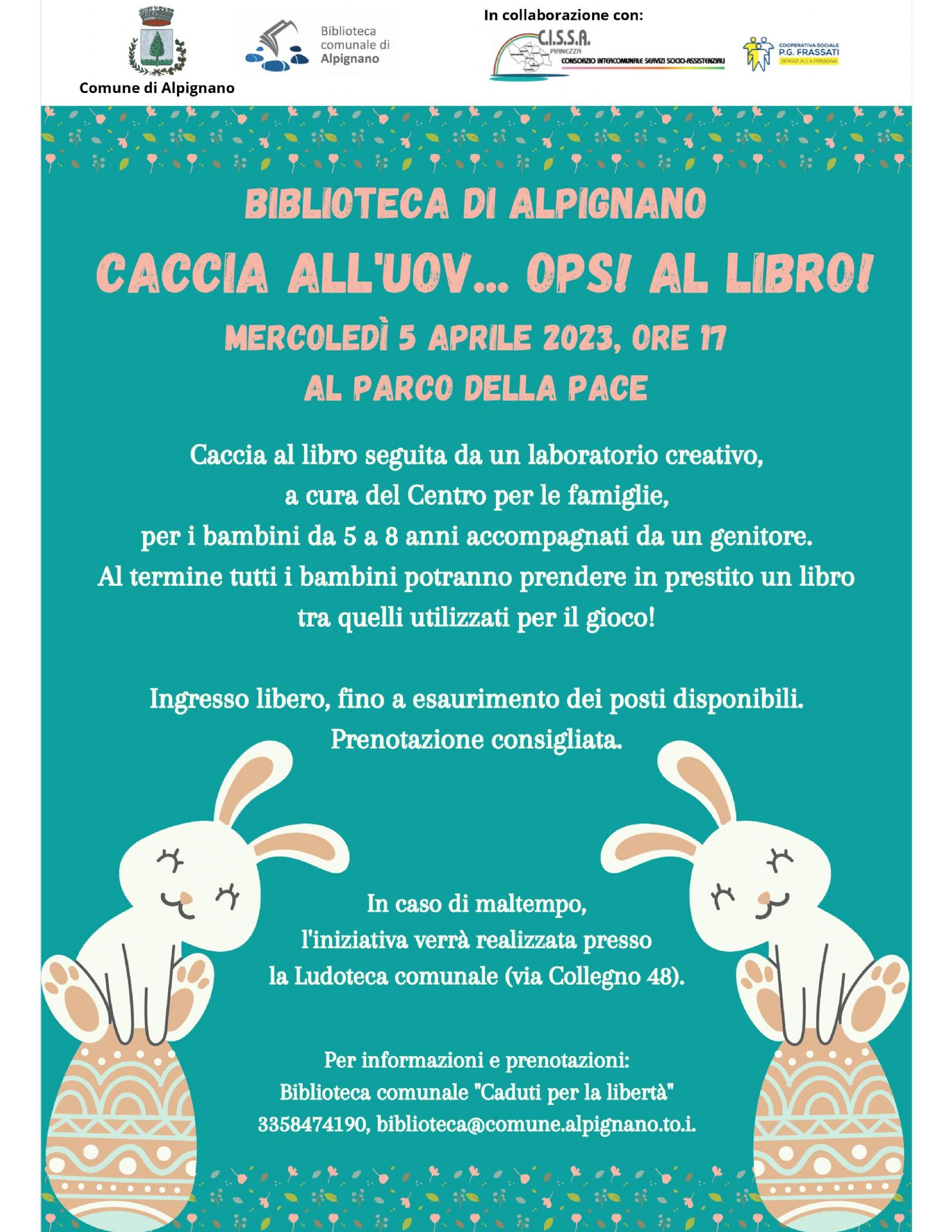 In caso di maltempo l'iniziativa si svolgerà presso la Ludoteca comunale di via Collegno 48.