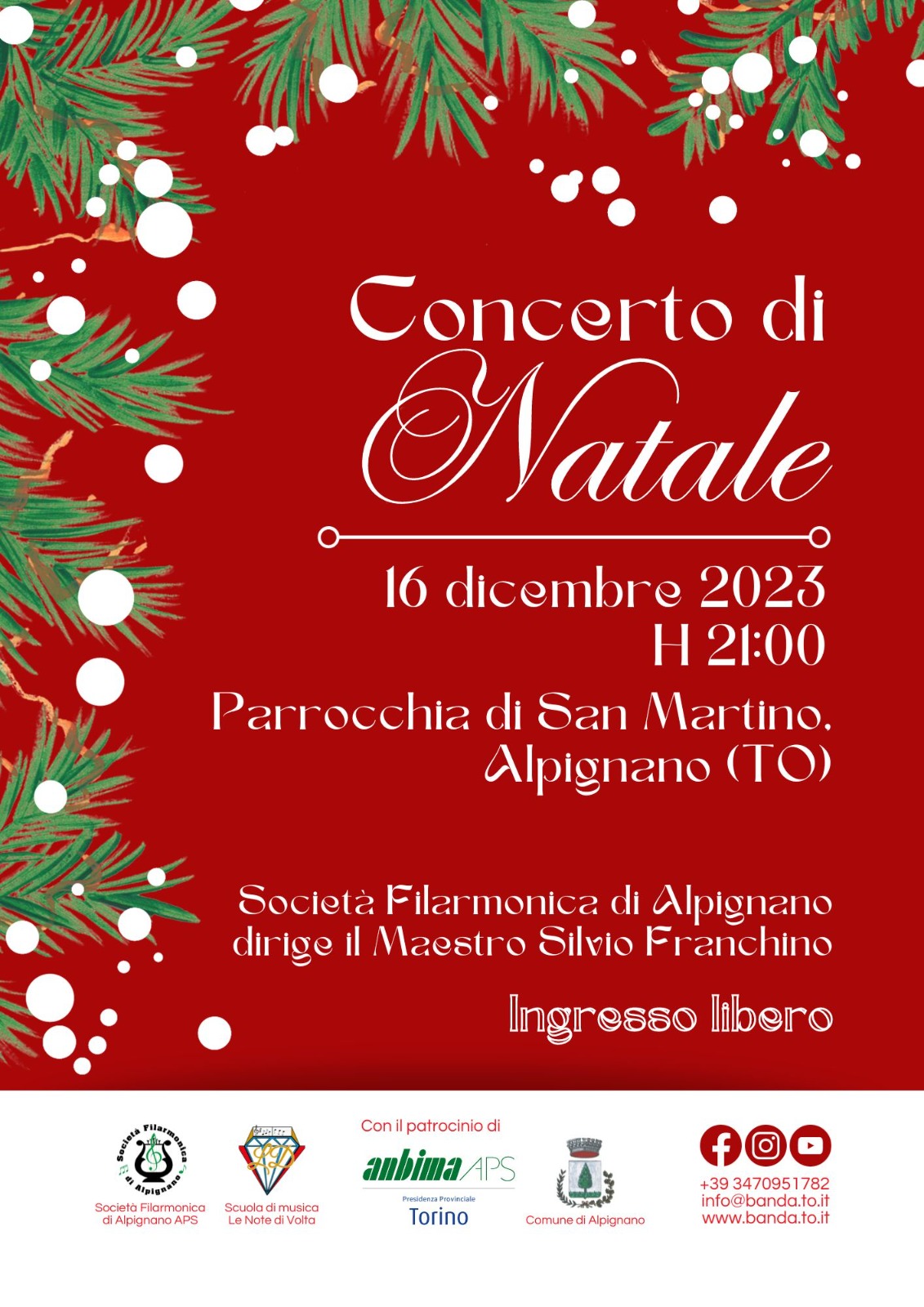 La Società Filarmonica di Alpignano organizza il tradizionale concerto di Natale, sabato 16 dicembre, ore 21, presso la Parrocchia San Martino Vescovo di Alpignano.