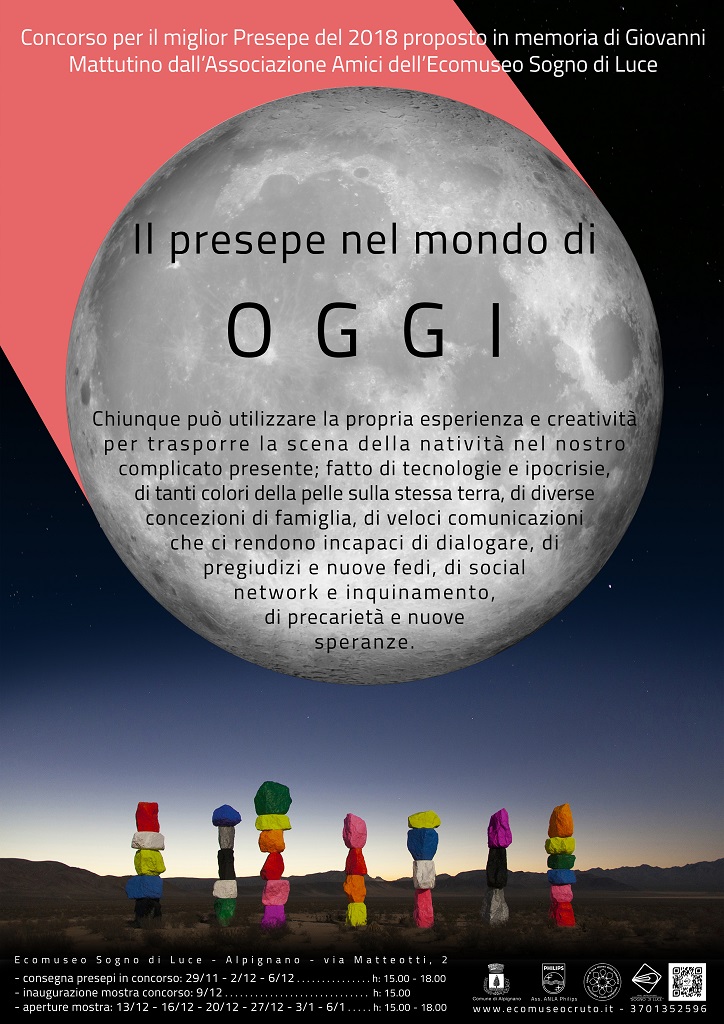 Domenica 6 gennaio 2019 alle ore 16:00 presso il salone Cruto gli Amici dell'Ecomuseo Sogno di Luce premieranno i vincitori del concorso dei presepi 2018.