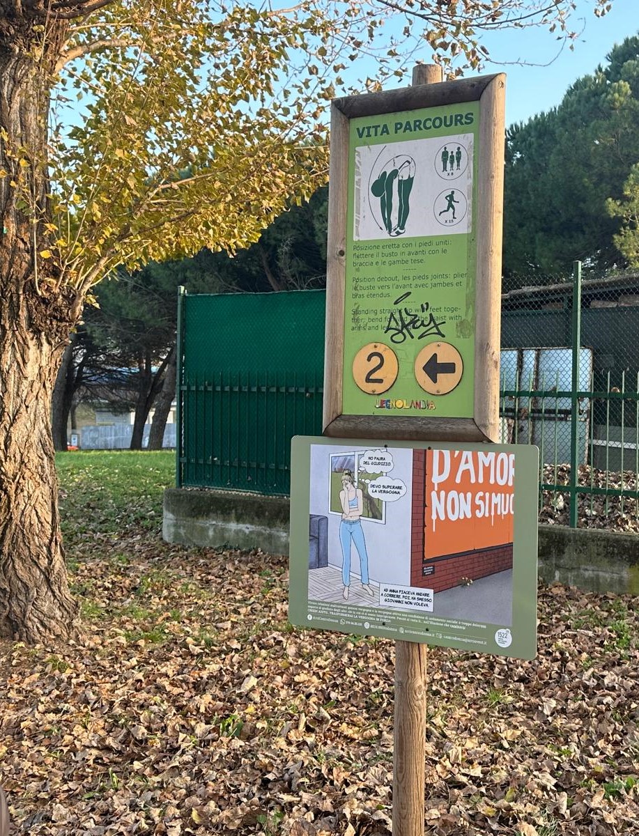 Per l'occasione sono state installate al Parco della Pace, grazie ai nostri Alpini, 6 illustrazioni a fumetti a firma dell'artista Elena Skoko, prodotti da Arci Centro Donna, per condividere con la cittadinanza, attraverso la potenza di un'immagine, suggestioni che permettano a tutti di riconoscere il fenomeno del maltrattamento e del sopruso che si consuma all'interno delle mura domestiche.