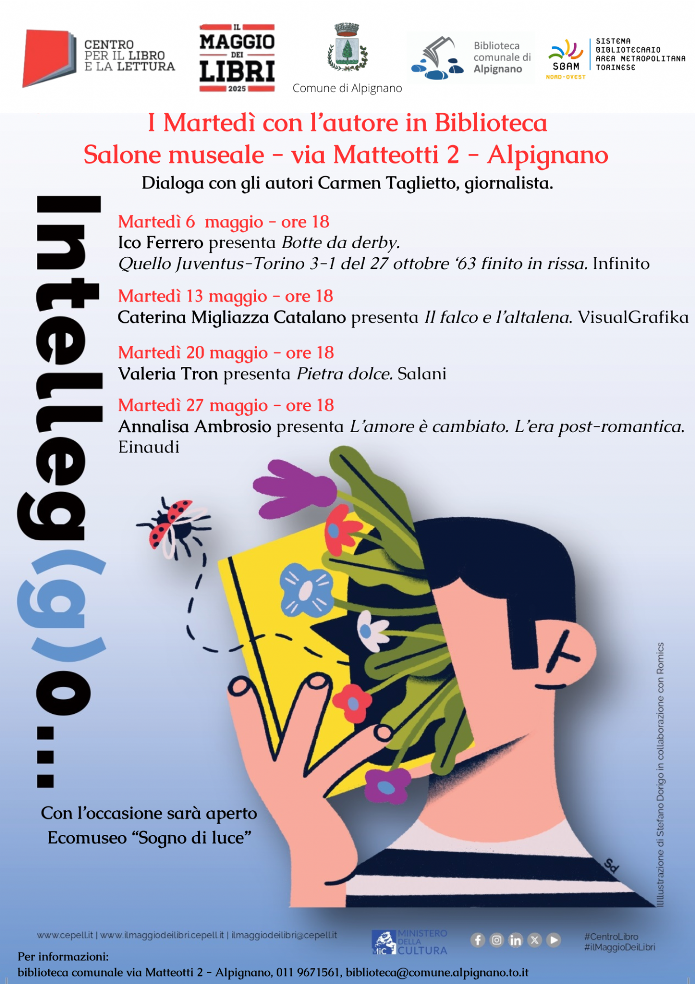 La biblioteca aderisce a Il Maggio dei libri con I Martedì con l’autore in Biblioteca, un ciclo di presentazioni di autori che ha inizio il 6 e termina il 27 maggio; questo il programma: