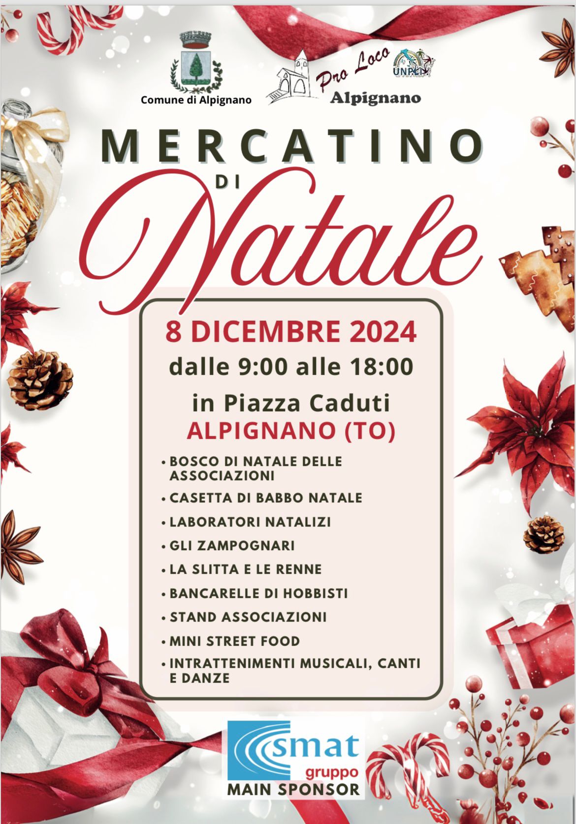 La Pro Loco di Alpignano, in collaborazione con il Comune di Alpignano, ha ideato un ricco programma per il mercatino di Natale del prossimo 8 dicembre 2024 proposto sotto il titolo “Natale in Luce ad Alpignano”.