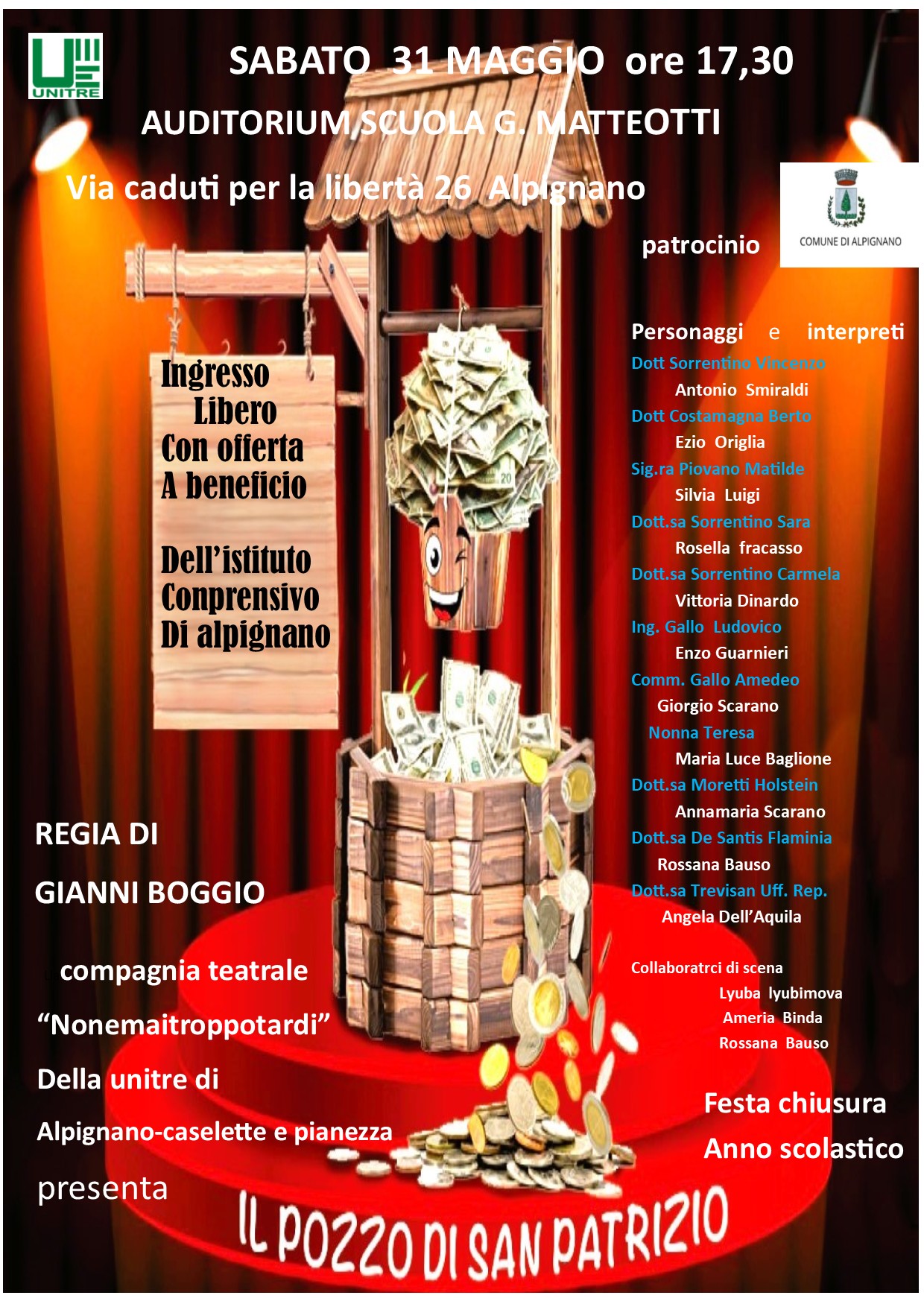 Spettacolo teatrale "Il pozzo di San Patrizio" sabato 31 maggio, ore 17:30, presso l'Auditorium della Scuola Primaria Matteotti.