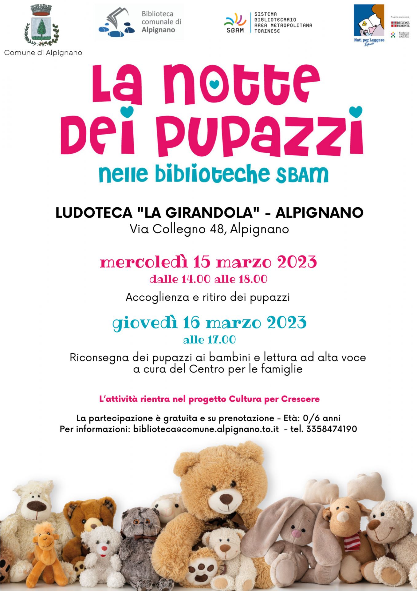 Le biblioteche dello Sbam, nell'ambito del progetto Nati per leggere, realizzato grazie al contributo di Regione Piemonte e Fondazione Compagnia di San Paolo, propongono "La notte dei pupazzi", attività che si inserisce a pieno titolo tra le azioni caratteristiche del progetto in quanto presenta il libro illustrato come diffusore affettivo: prendersi cura di qualcuno significa anche dedicargli del tempo, immaginare che cosa gli piace, spiegare pagine e storie. Questa proposta si ritiene possa avere valenze positive anche sull'incentivazione della lettura in famiglia.
