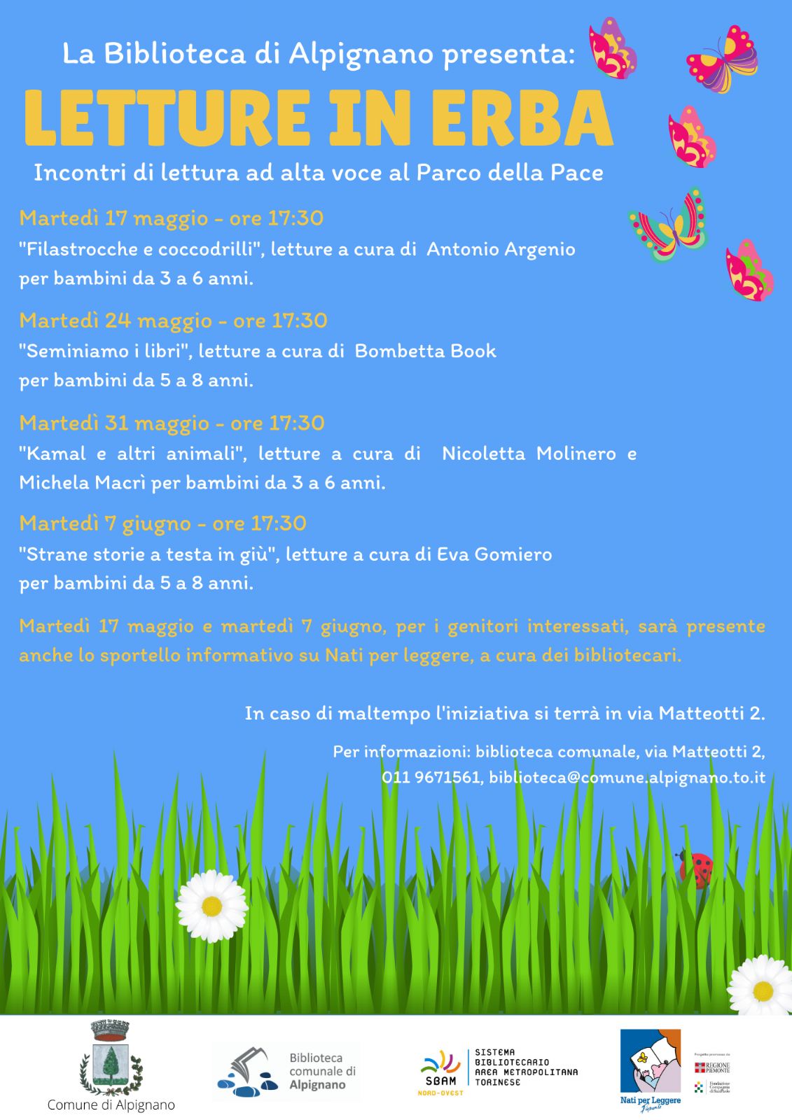 - martedì 24 maggio, ore 17:30: “Seminiamo i libri”, letture a cura di Bombetta Book, per bambini da 5 a 8 anni