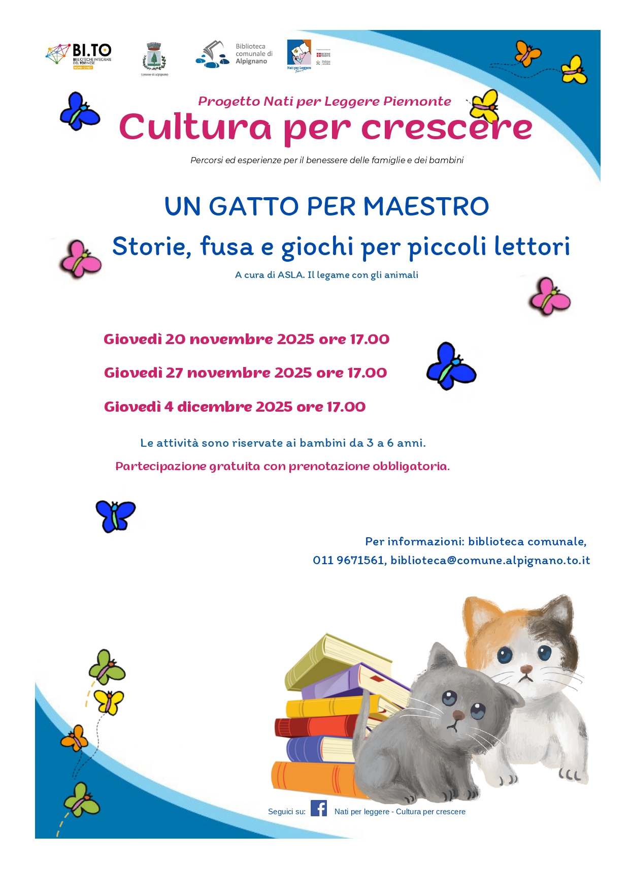Per informazioni e iscrizioni: biblioteca@comune.alpignano.to.it, 0119671561.