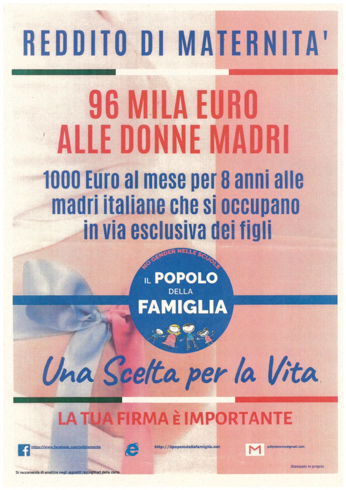LA RACCOLTA FIRME PER LA PROPOSTA DI LEGGE DI INIZIATIVA POPOLARE DENOMINATA "ISTITUZIONE DELL'INDENNITA' DI MATERNITA' PER LE MADRI LAVORATRICI NELL'ESCLUSIVO AMBITO FAMIGLIARE" E' DISPONIBILE FINO AL 20 MARZO 2019 PRESSO L'UFFICIO RELAZIONI CON IL PUBBLICO IN ORARIO DI UFFICIO