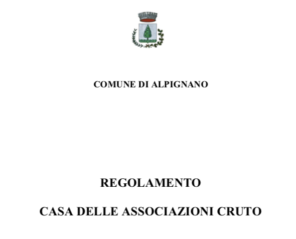 L'Amministrazione Comunale informa che è disponibile il testo del nuovo regolamento "CASA DELLE ASSOCIAZIONI CRUTO".