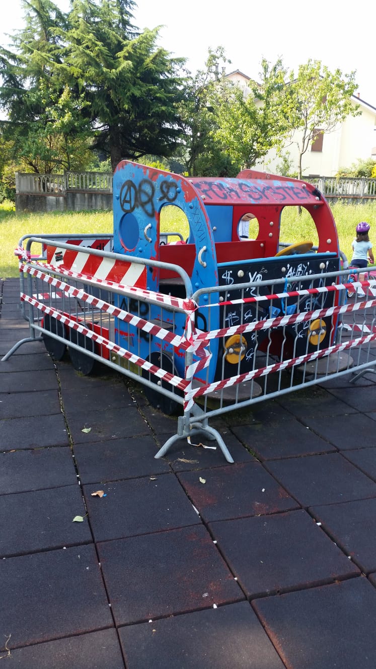 L'Ufficio Tecnico Area Lavori Pubblici informa che a seguito di ennesimi atti vandalici sono in corso le attività di ripristino dei giochi all'interno del parco.