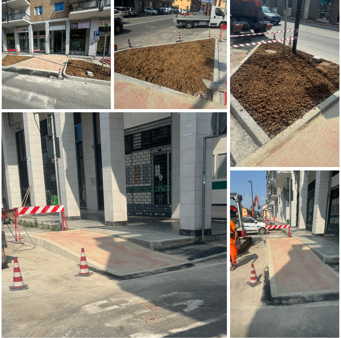 - posa autobloccanti della nuova rampa pedonale (PEBA) in via Cavour lato sinistro angolo via Toti;