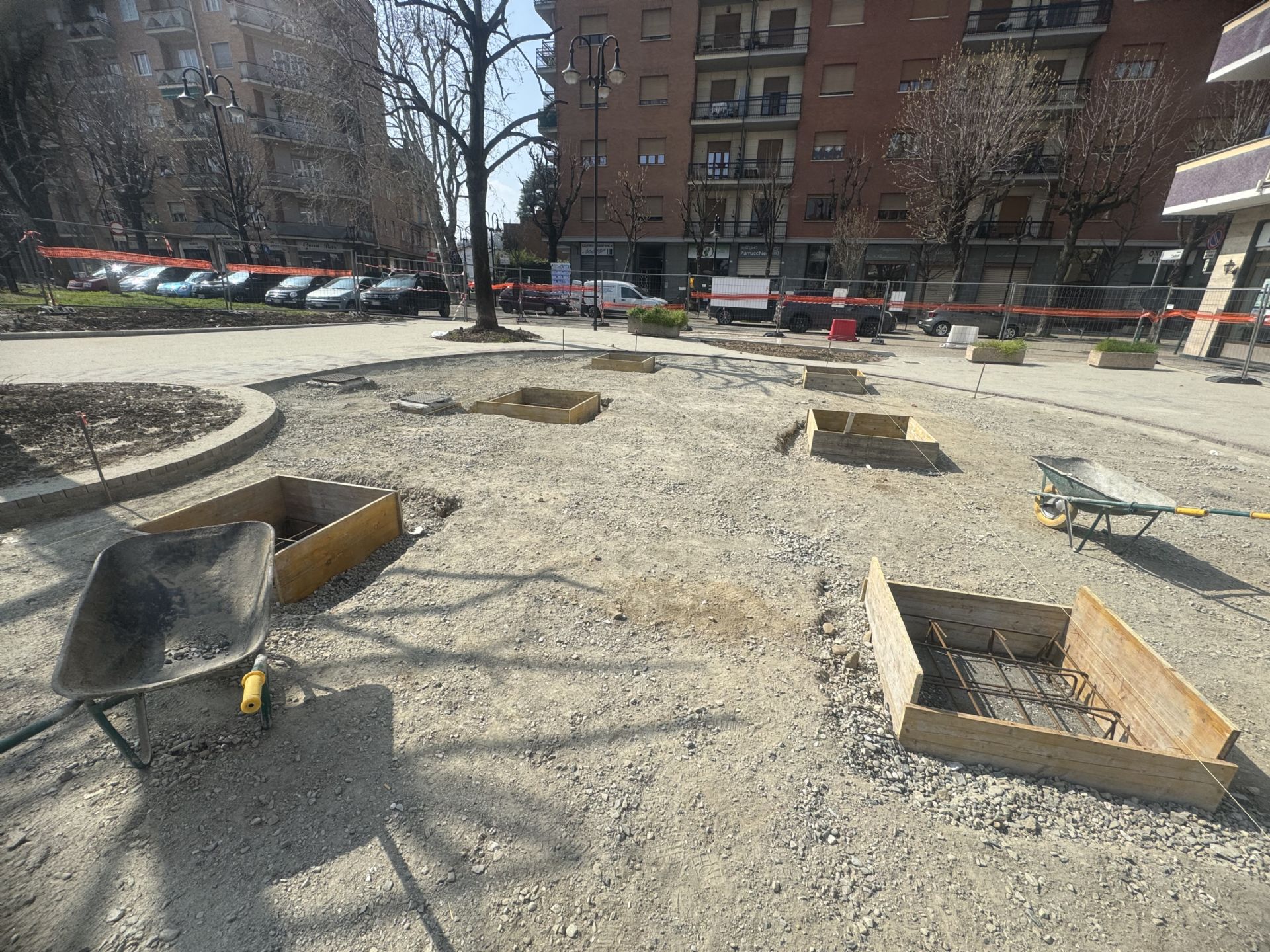 Oggi sono in corso i lavori di posta dell'armatura in acciaio per la realizzazione dei plinti di fondazione in cemento armato per l'ancoraggio del nuovo gazebo in acciaio.