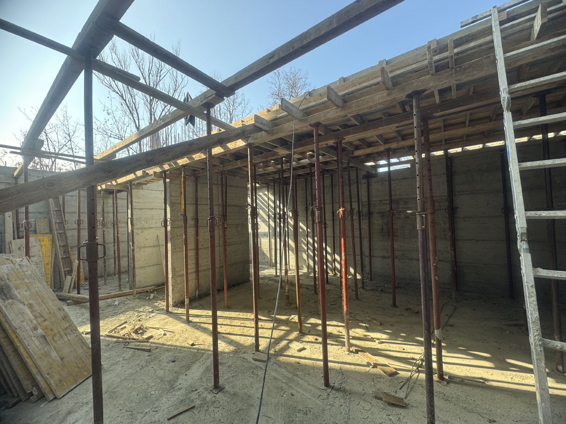 Oggi sono in corso i lavori per la realizzazione della carpenteria della trave ribassata del solaio a sbalzo del piano terreno del nuovo blocco servizi della villa storica.