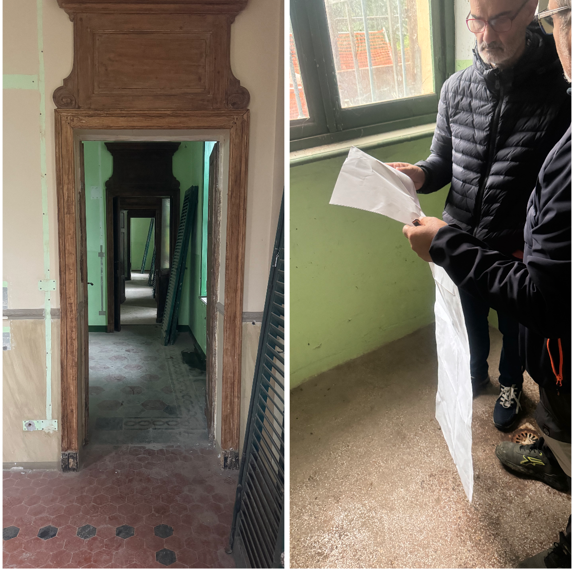 Oggi sono in corso le attività di tracciamento dell'impianto di riscaldamento all'interno della palazzina storica.