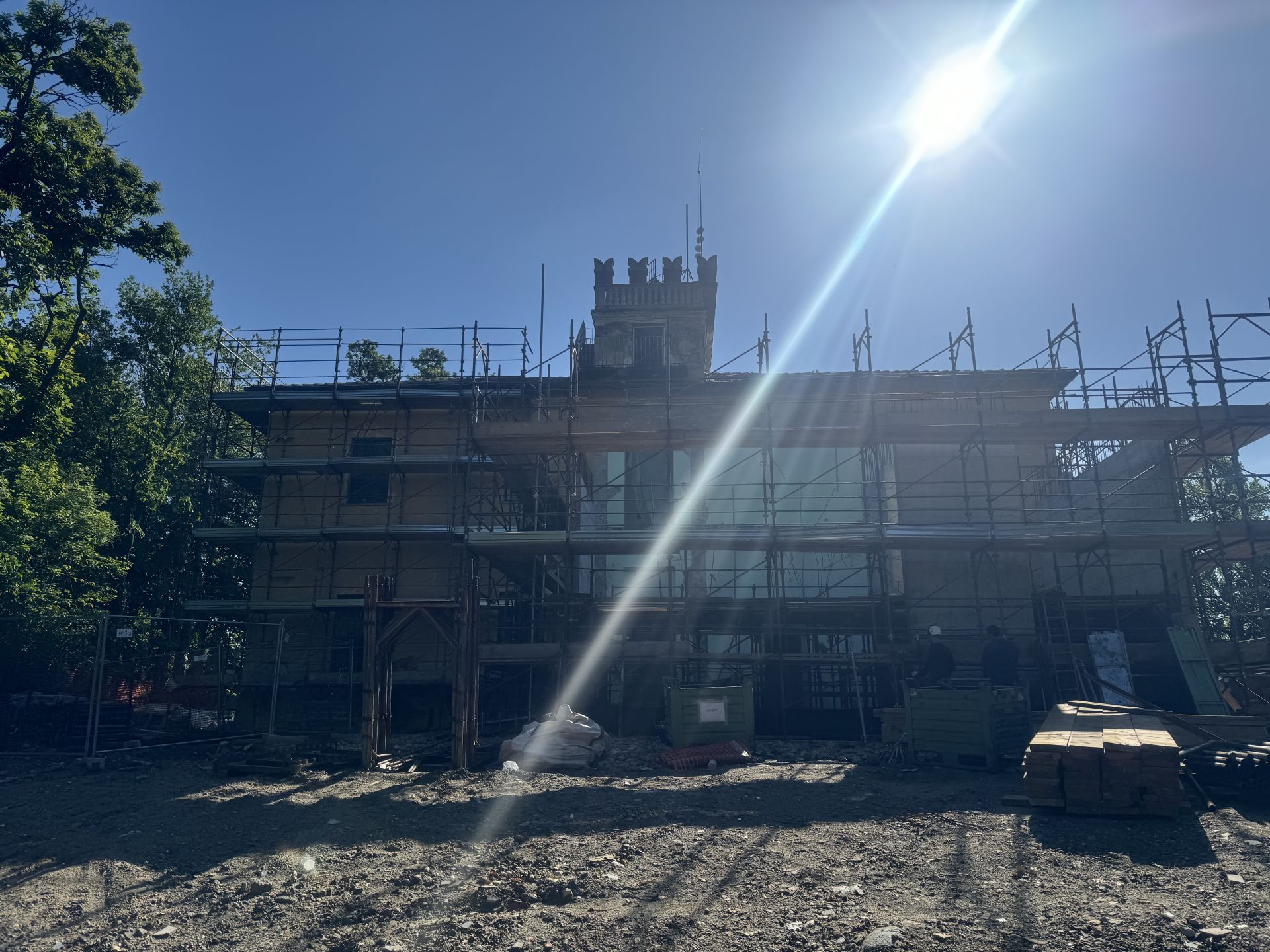 Oggi sono in corso i lavori di montaggio del ponteggio a supporto delle attività per la costruzione della nuova palazzina.