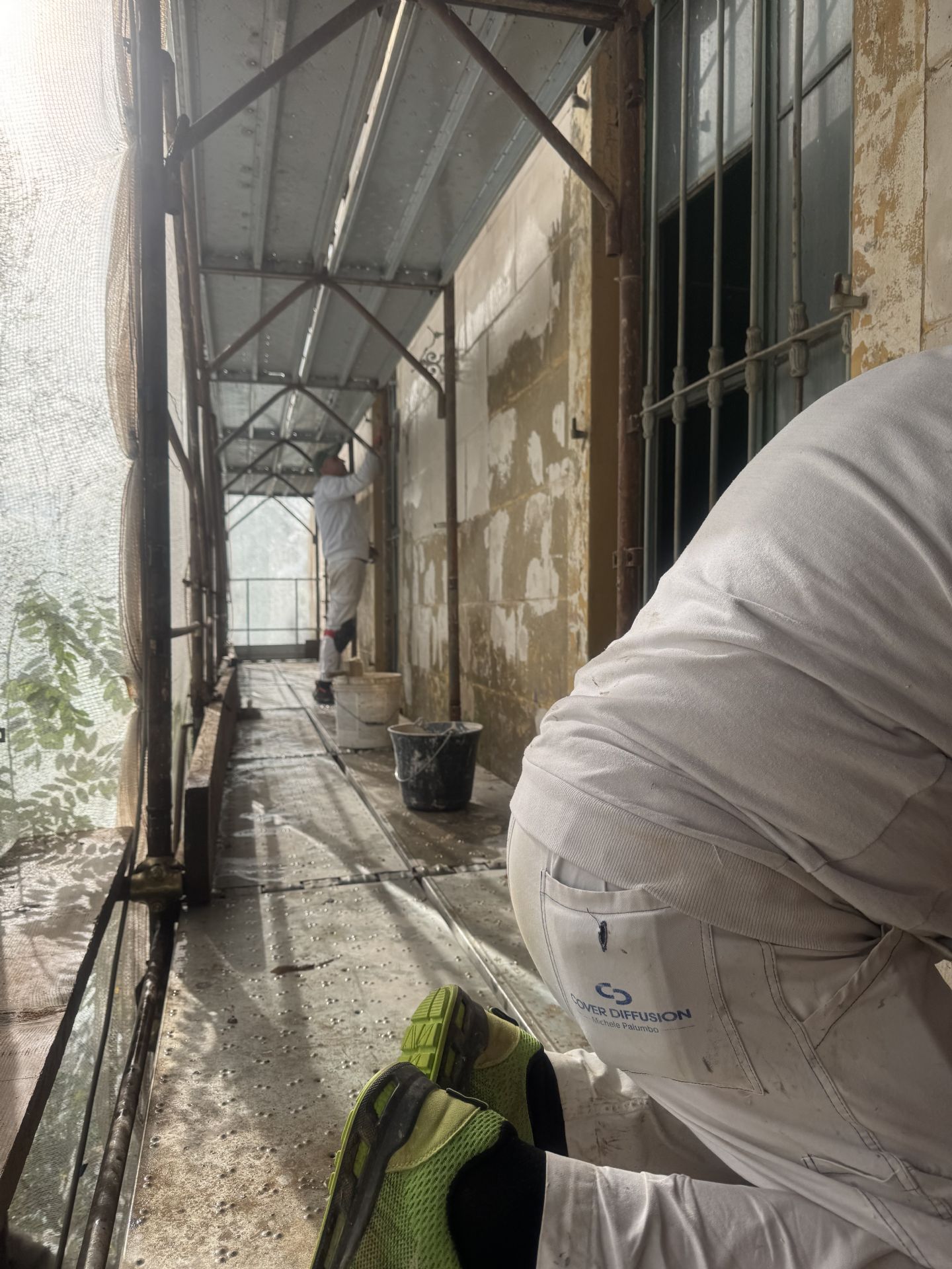 Oggi sono in corso i lavori di restauro dei muri e fregi esterni della facciata della villa storica lato est.
